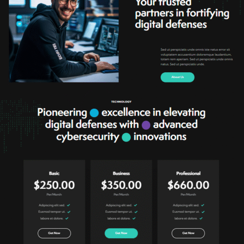 الصفحة الرئيسية (HOME) مع قسم "من نحن" (ABOUT US) صُممت لتكون أنيقة وسهلة التصفح، تبدأ بترحيب يجذب الانتباه ثم تعرّف بعملك وقيمك بشكل احترافي. تصميم متجاوب يعكس جدية مشروعك ويعزز ثقة عملائك بك من الزيارة الأولى.